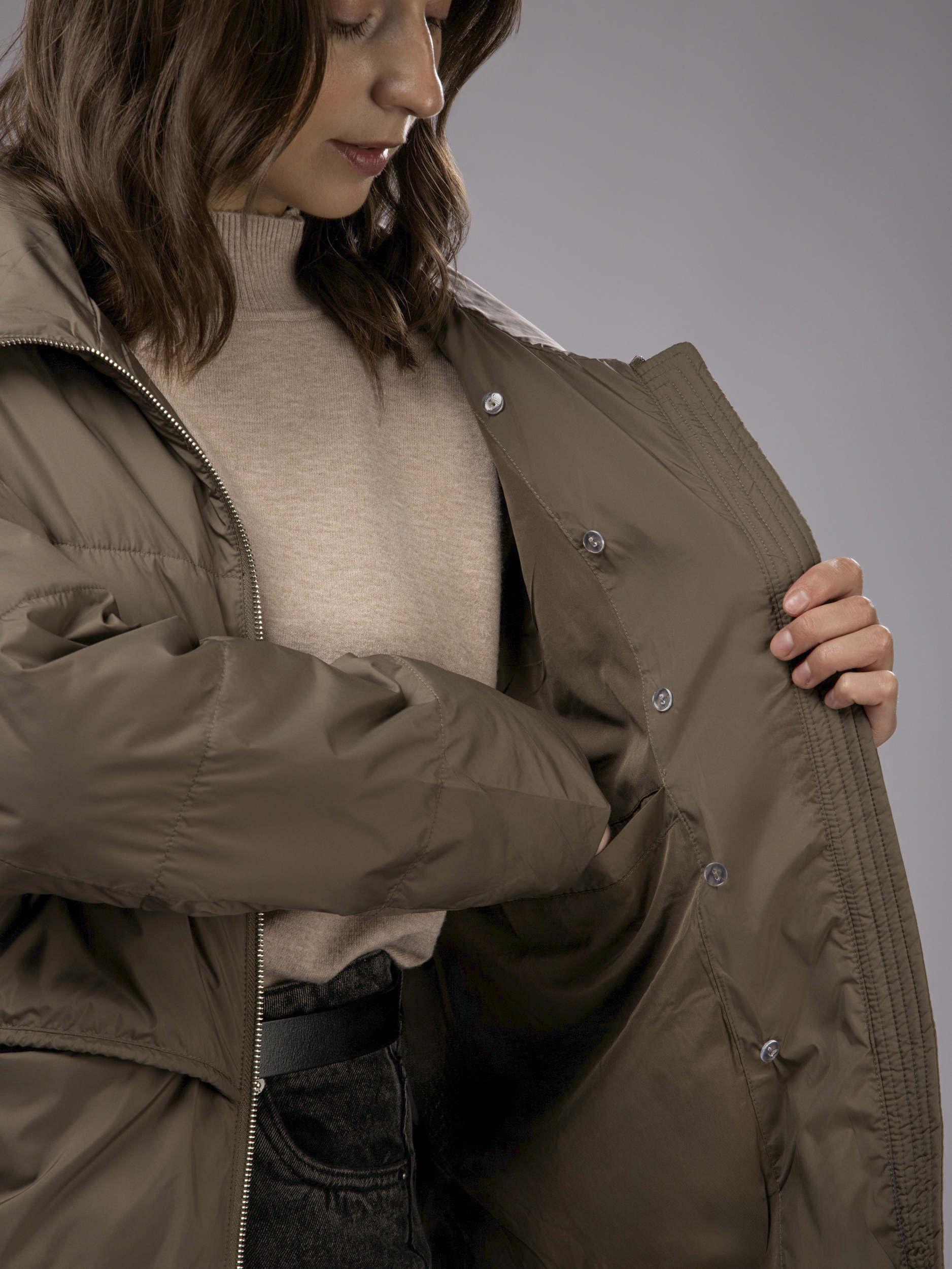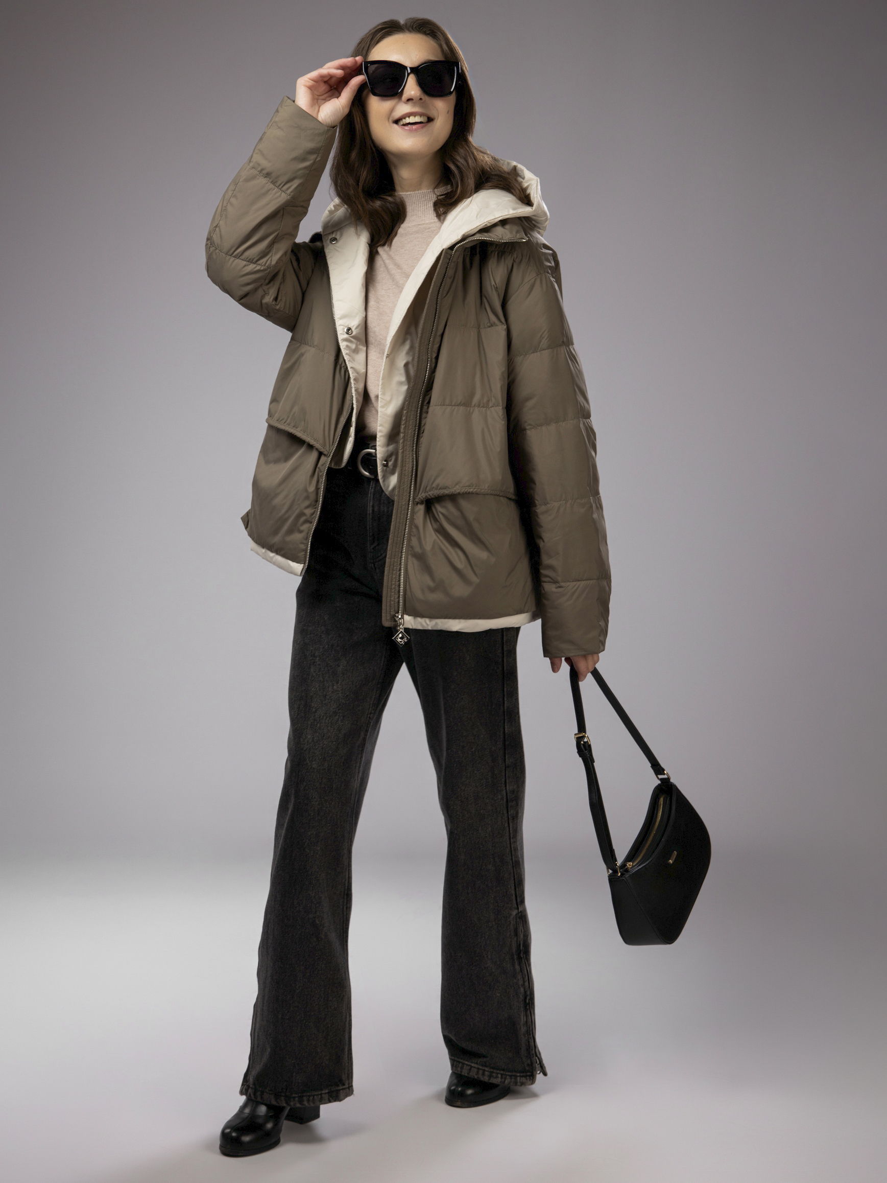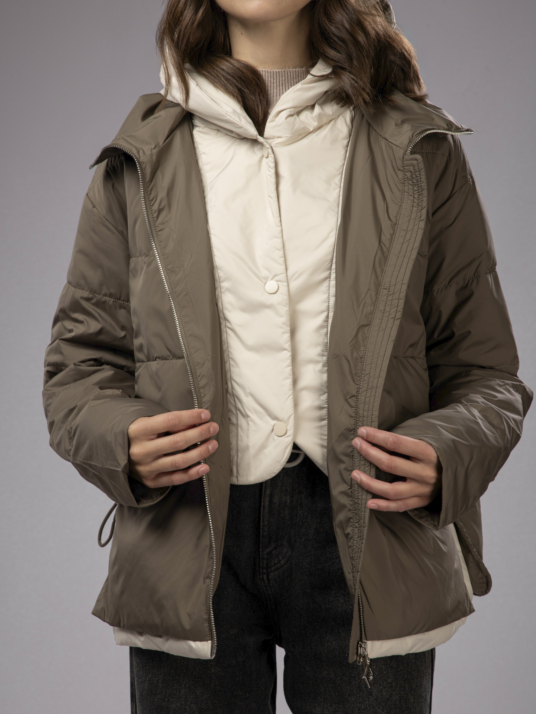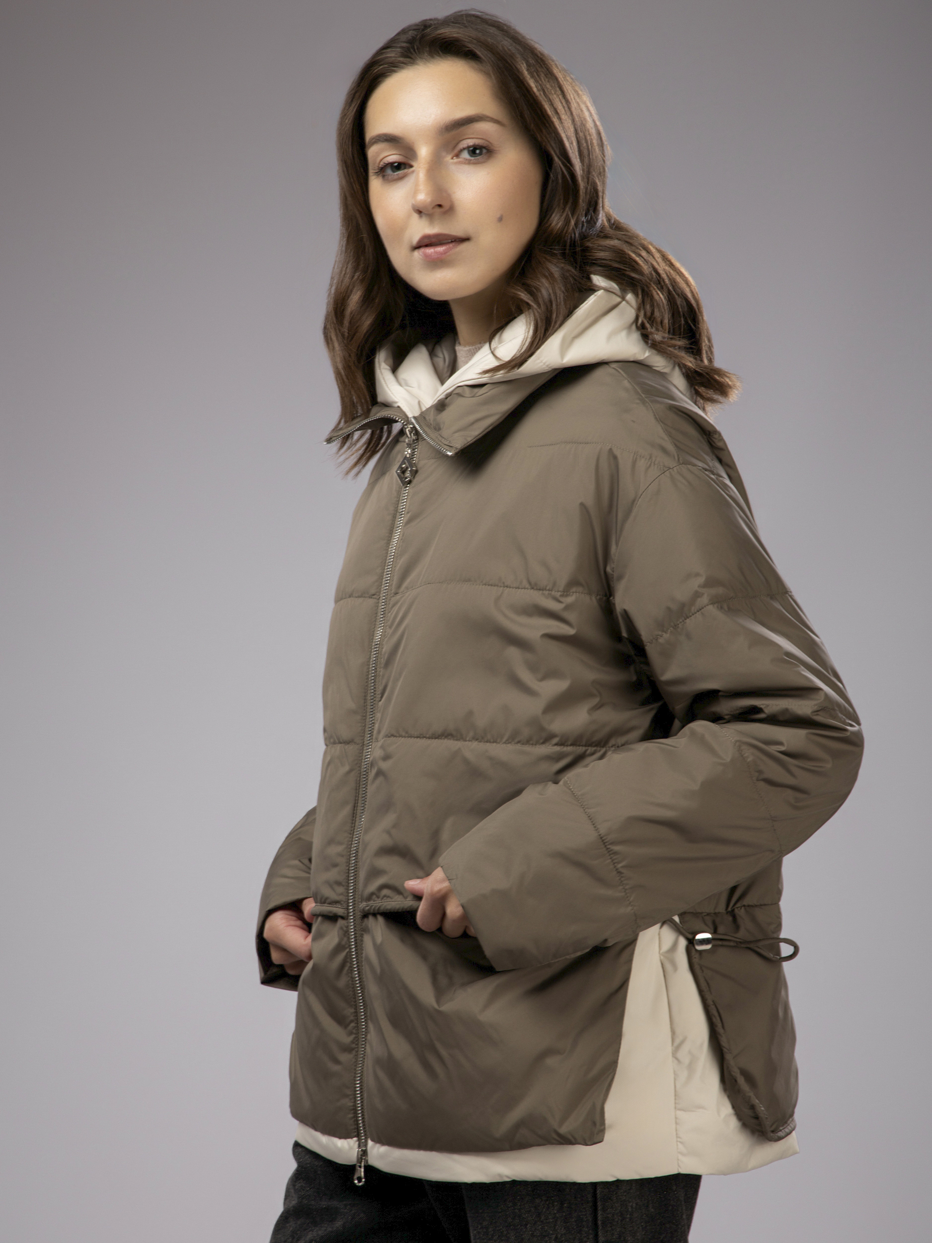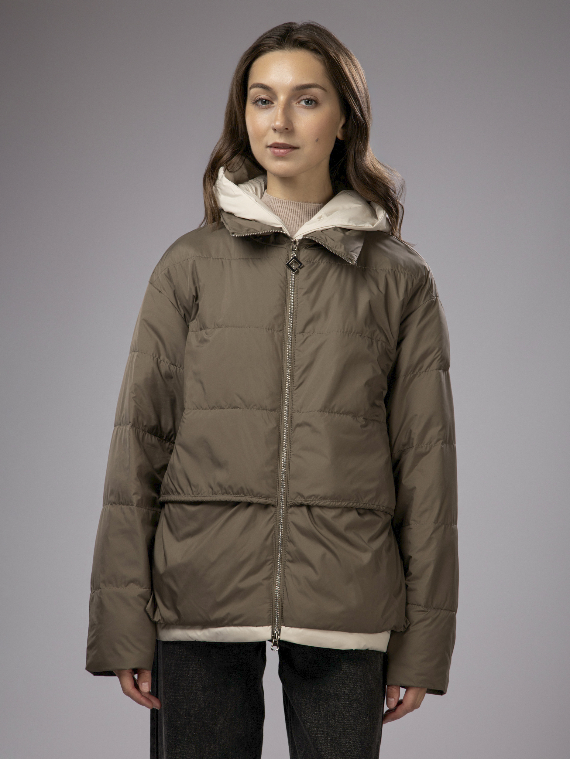 Куртка демисезонная с капюшоном оверсайз арт. 2802-P200-Khaki-SWA1