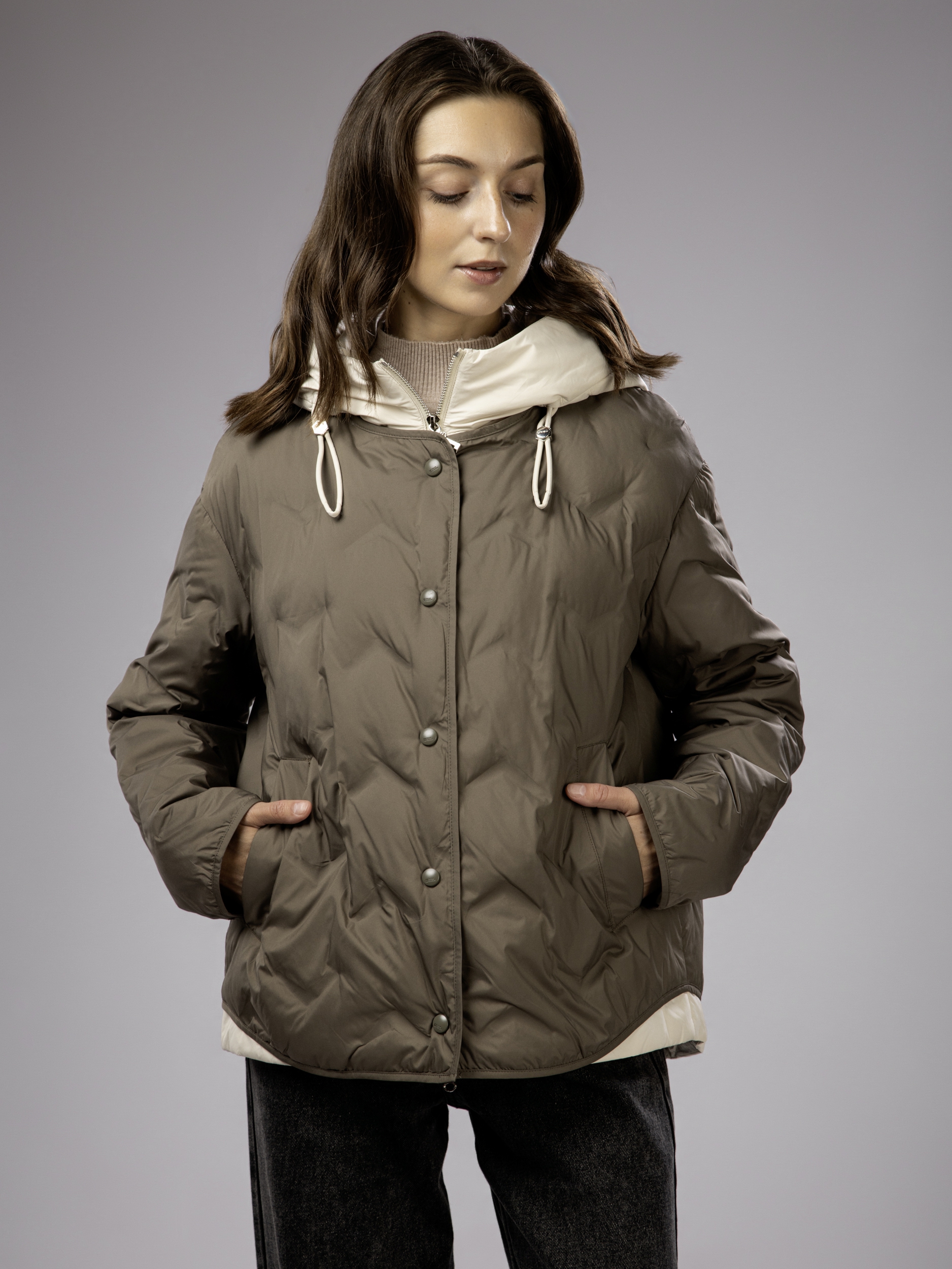 Куртка демисезонная с капюшоном оверсайз арт. 2919-P516-D-Khaki-SWA1