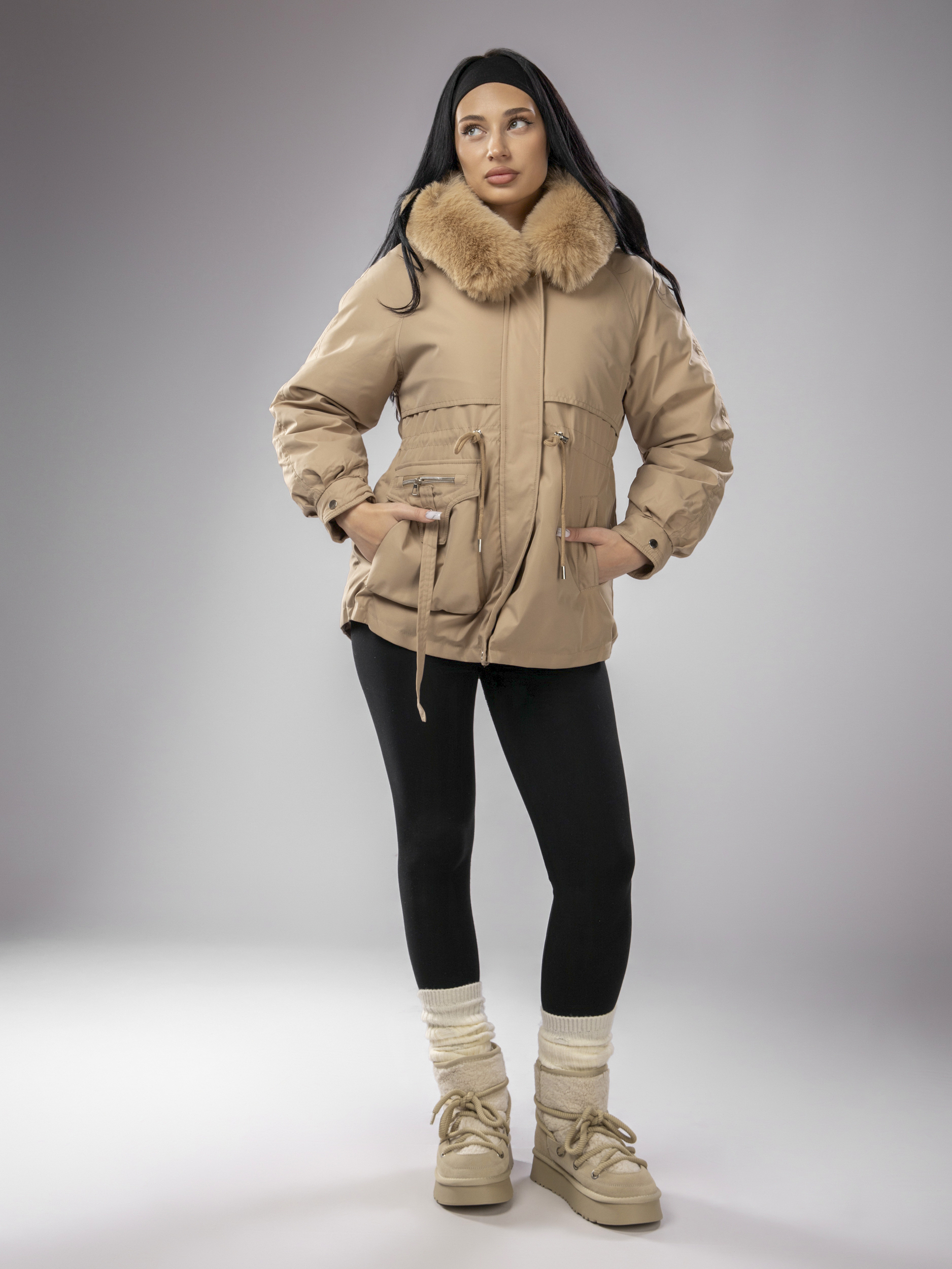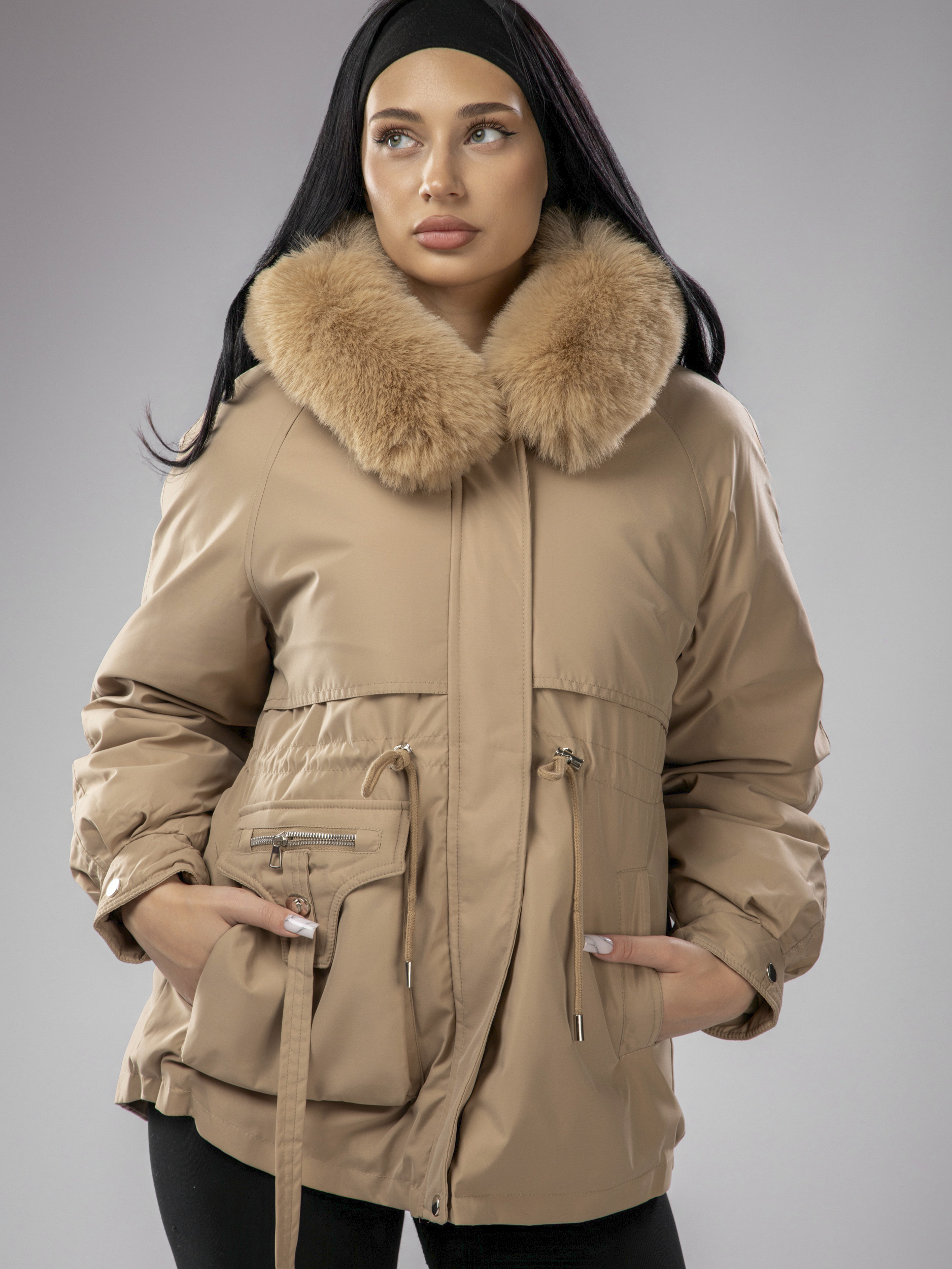 Женская зимняя парка с капюшоном идеально подходит для переменчивой погоды зимой и осенью. Куртка выполнена из непромокаемого материала, что защищает от ветра, снега и дождя, а меховой воротник добавляет стильный акцент. Приталенный крой подчеркивает фигуру, а капюшон с искусственным мехом создает дополнительный уют в прохладные дни. Съемная опушка придает образу элегантность и завершенность.