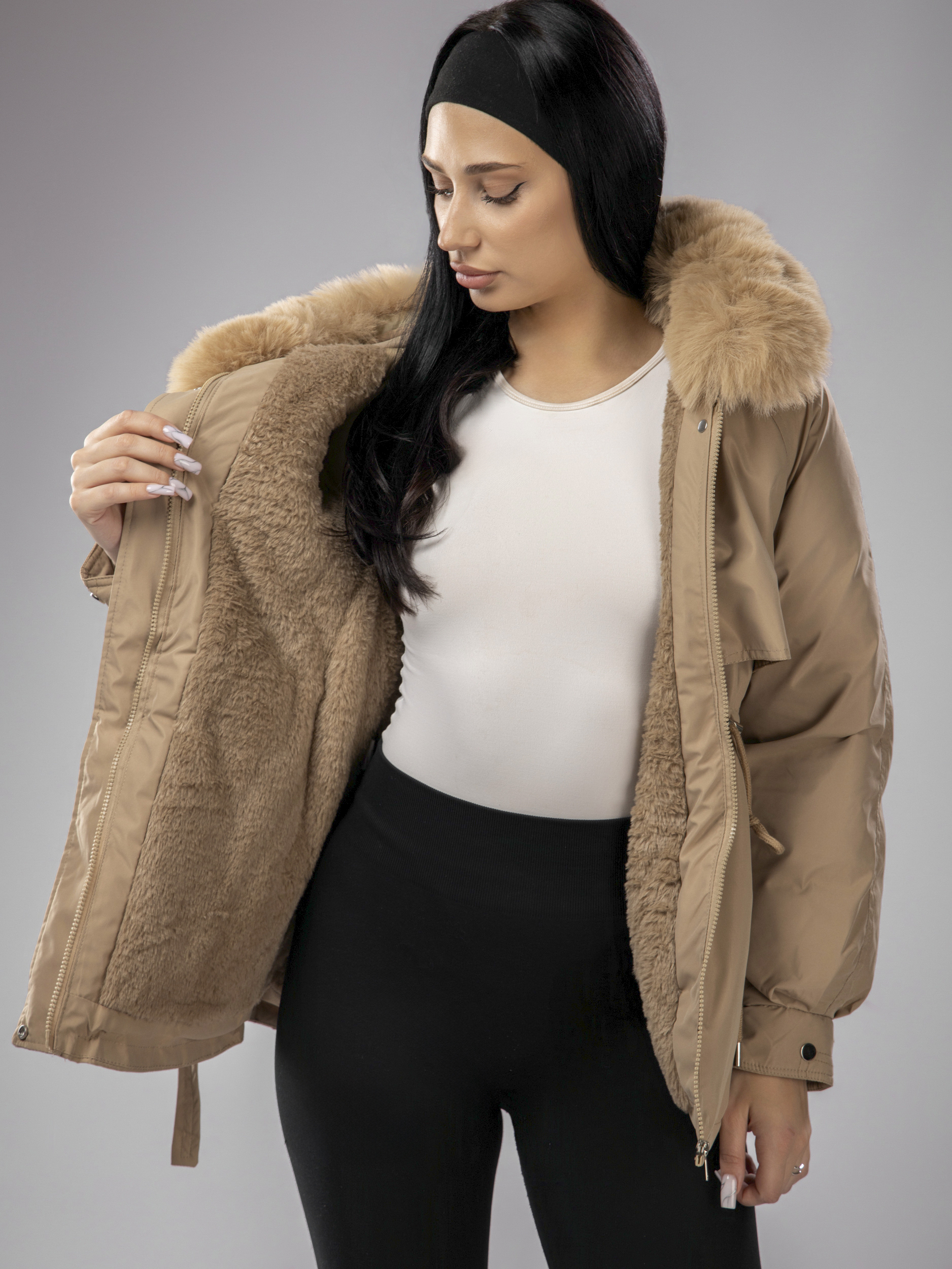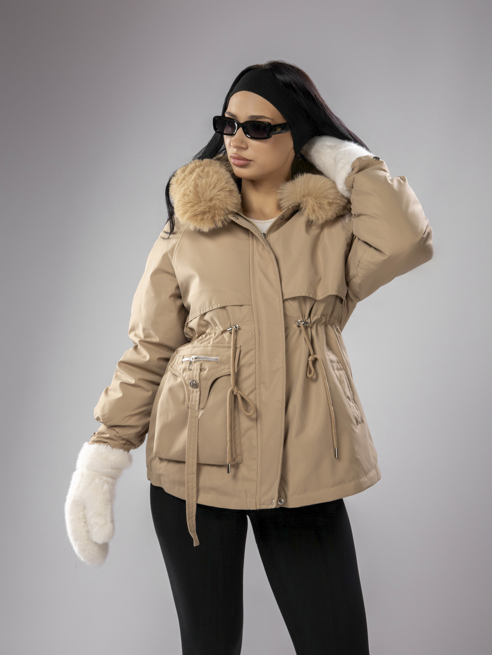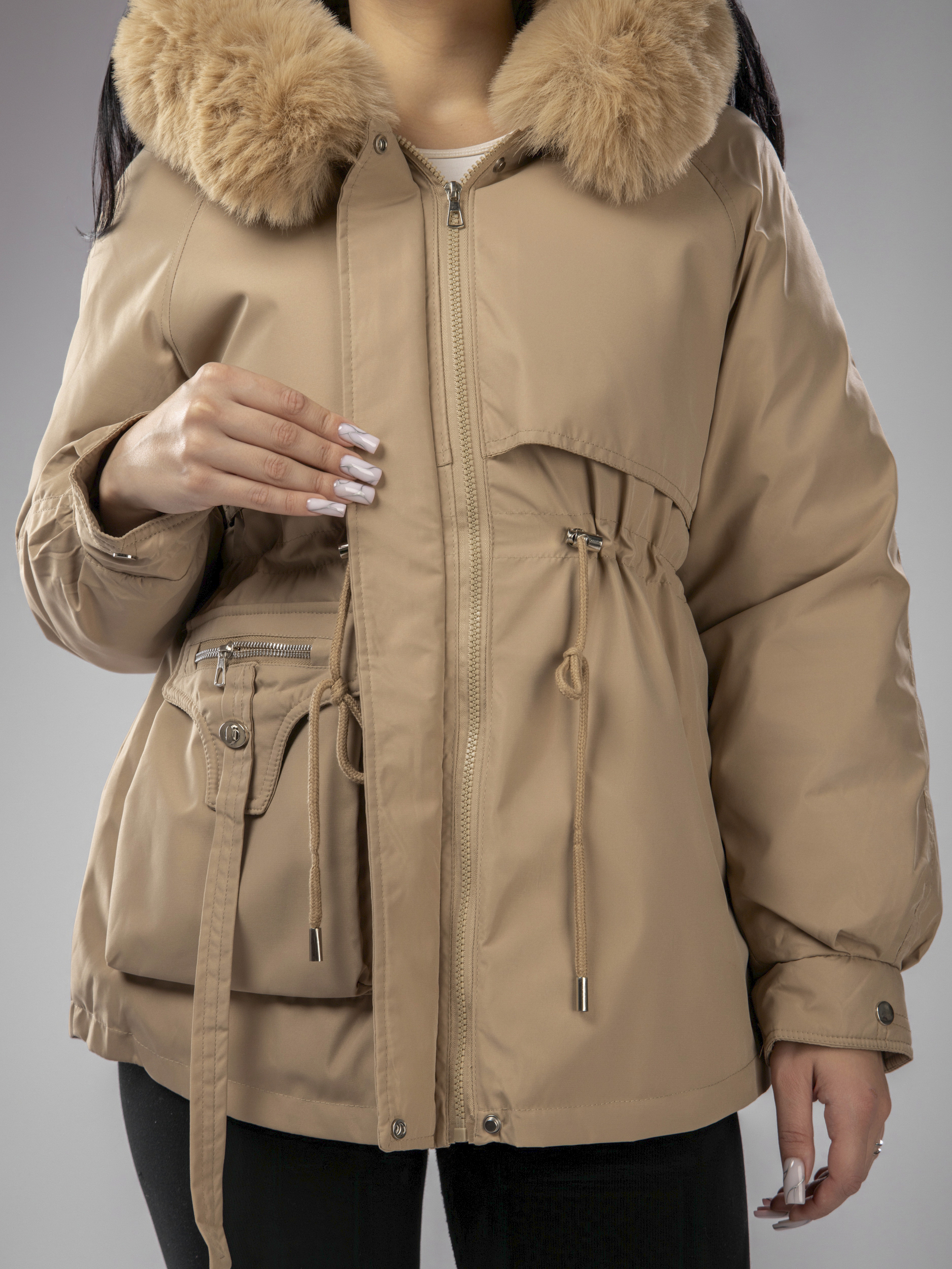 Женская зимняя парка с капюшоном идеально подходит для переменчивой погоды зимой и осенью. Куртка выполнена из непромокаемого материала, что защищает от ветра, снега и дождя, а меховой воротник добавляет стильный акцент. Приталенный крой подчеркивает фигуру, а капюшон с искусственным мехом создает дополнительный уют в прохладные дни. Съемная опушка придает образу элегантность и завершенность.