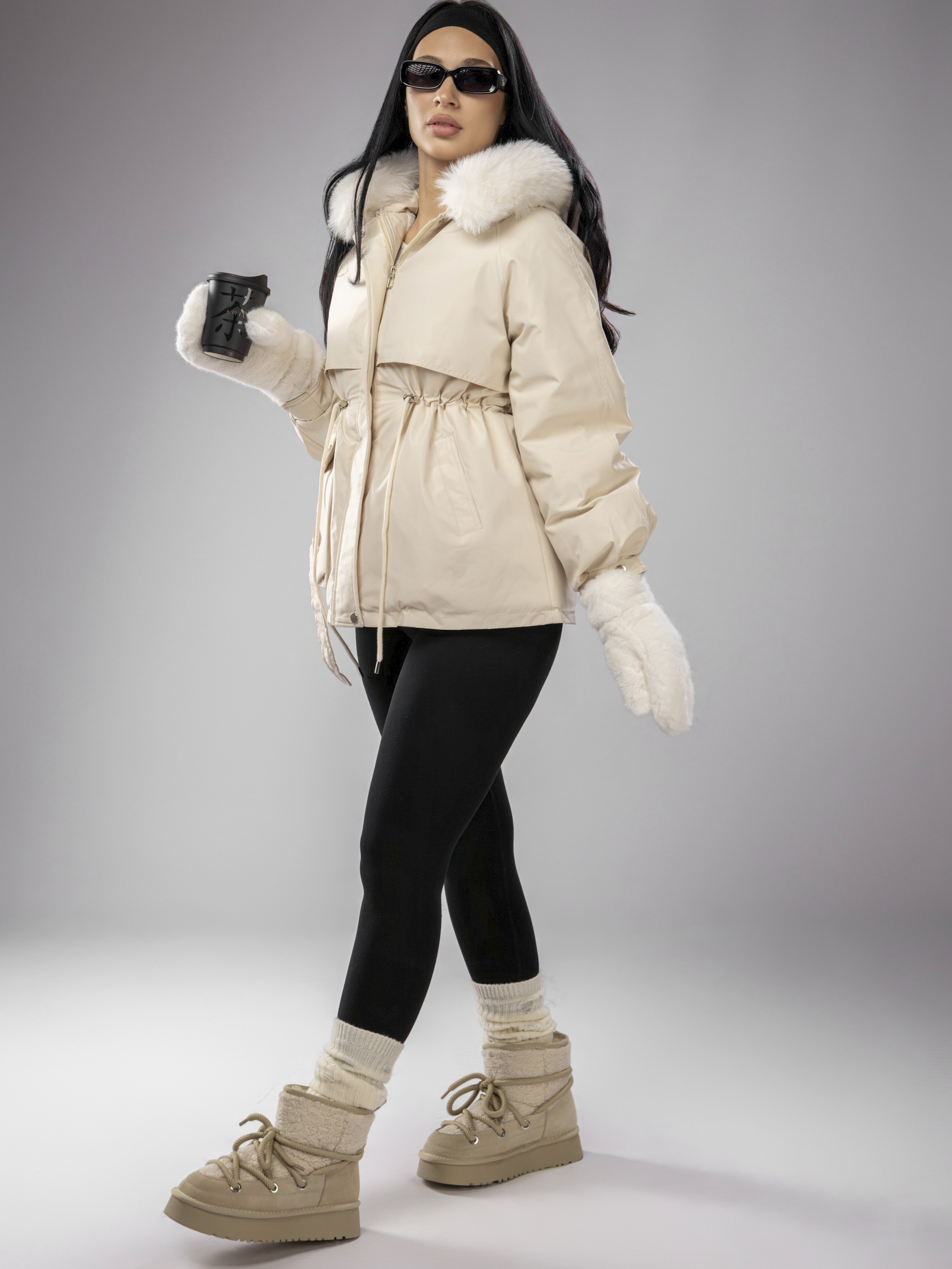 Куртка зимняя парка с капюшоном арт. 888-L-Beige-ZG88