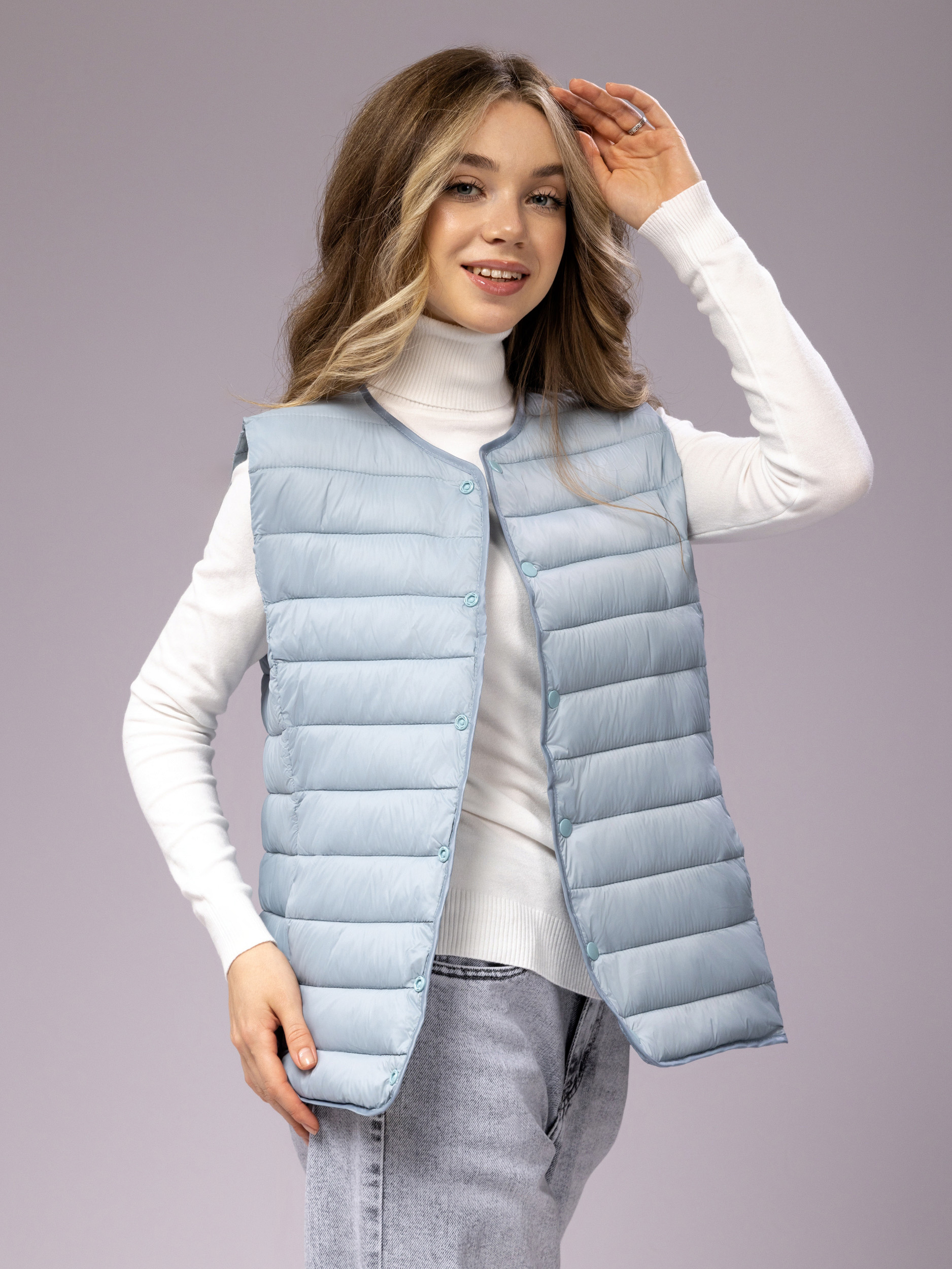 Жилетка стеганая без капюшона арт. A08-Pale-Blue-ZG88