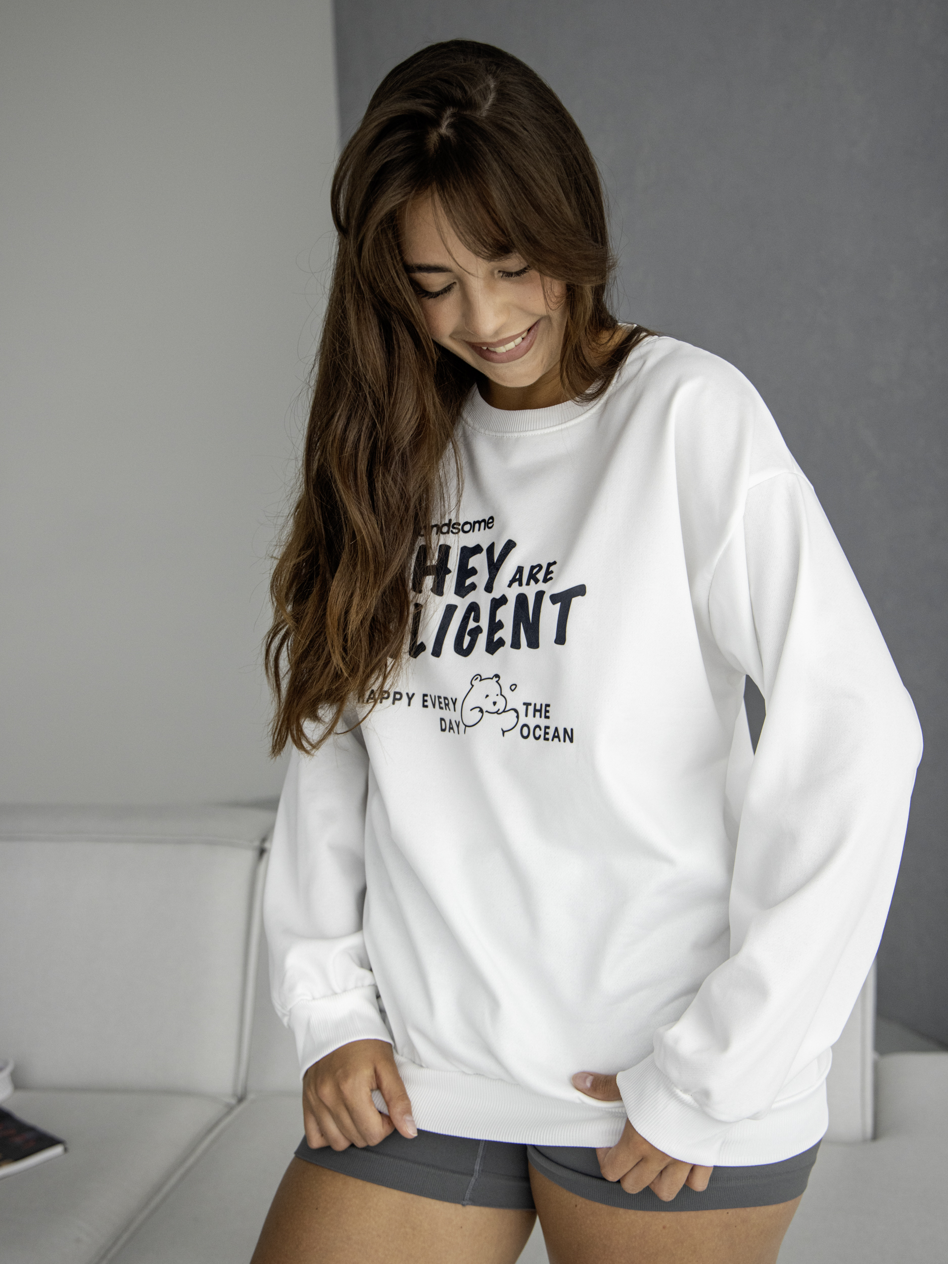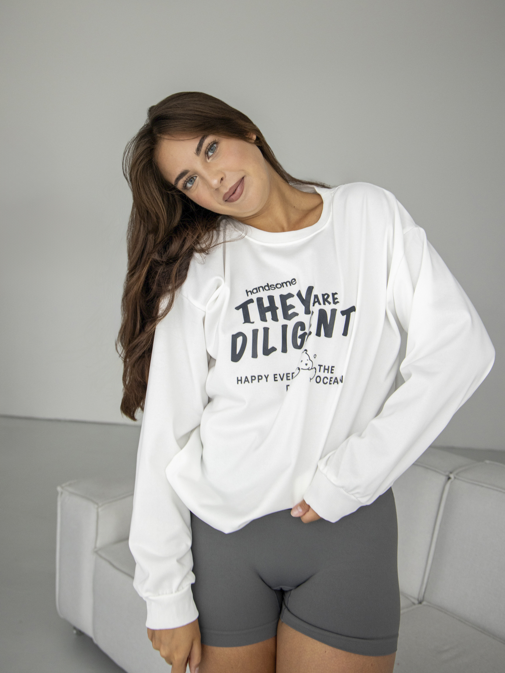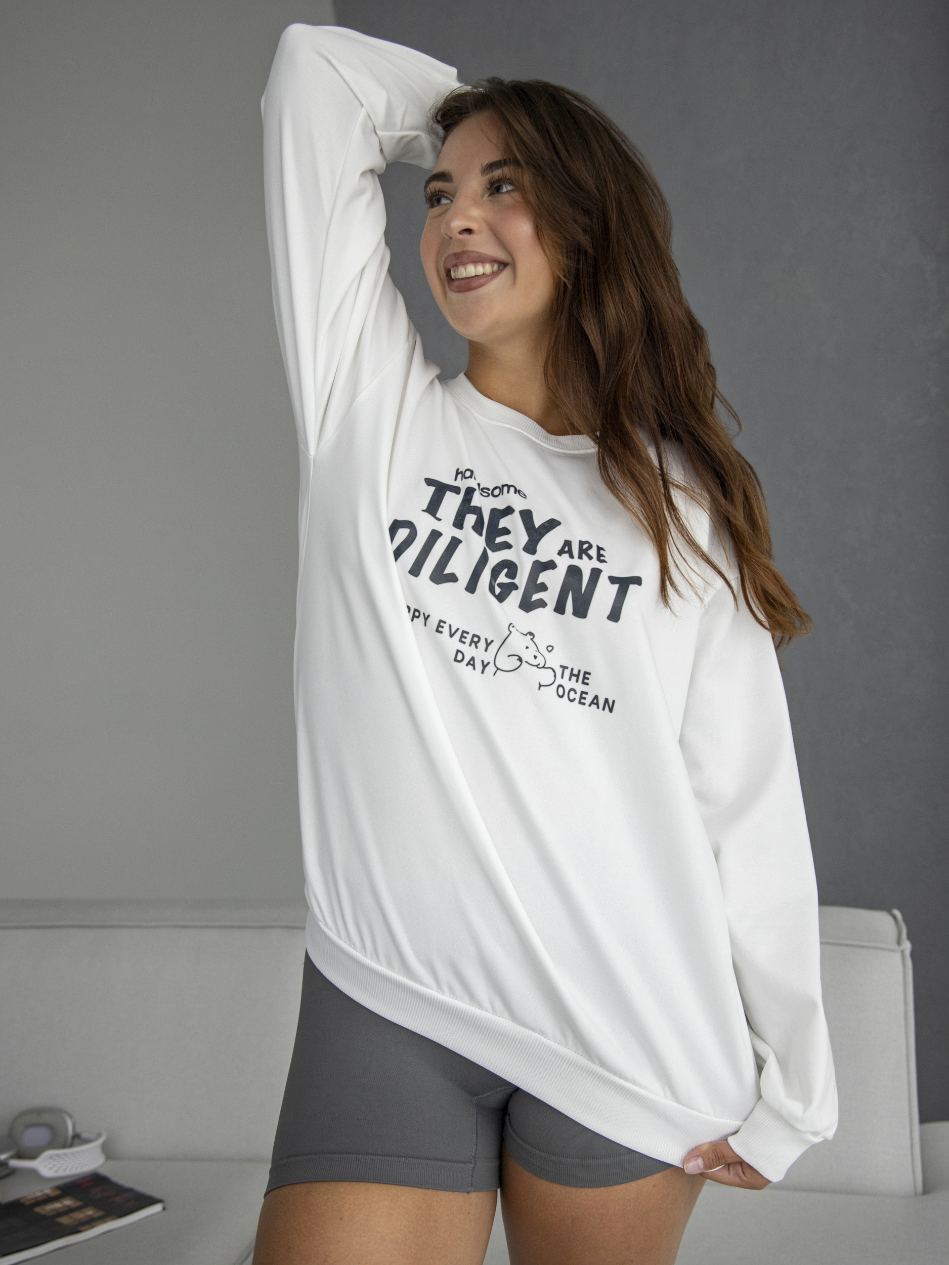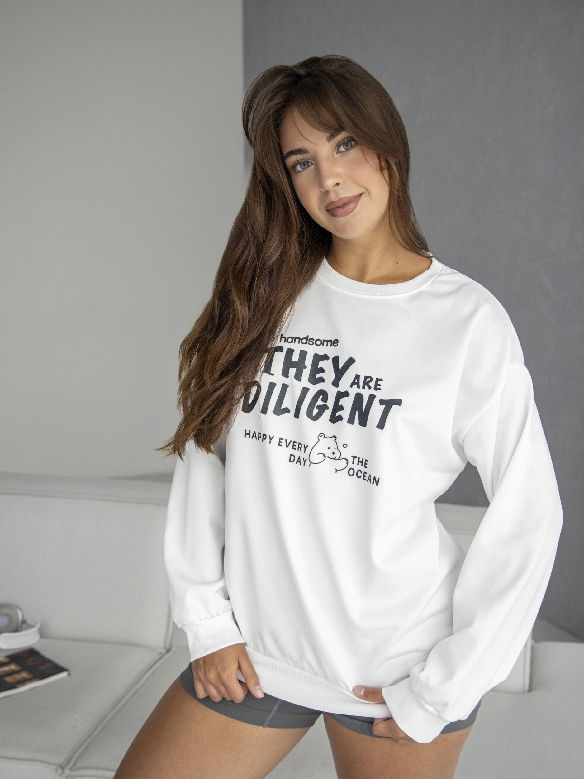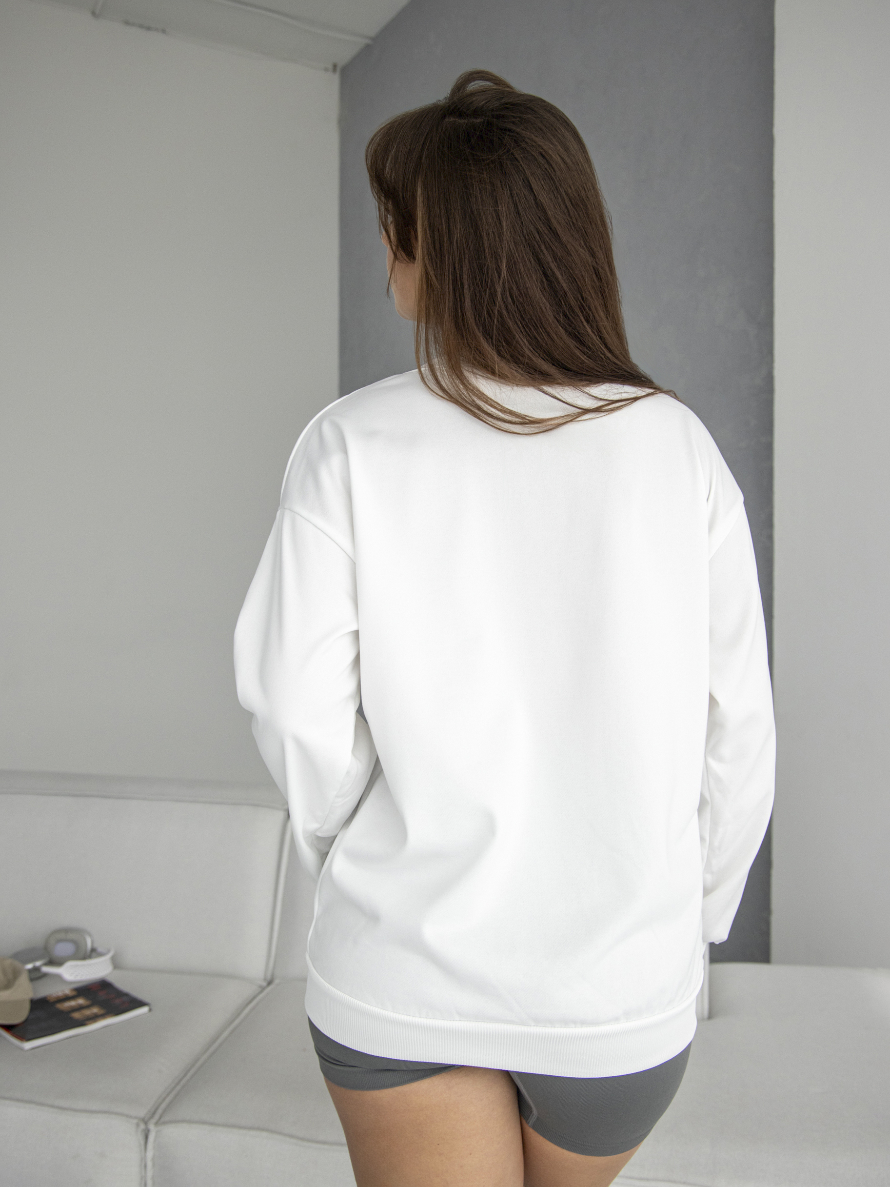 Свитшот оверсайз с принтом без начеса арт. 5512-White-ZG88