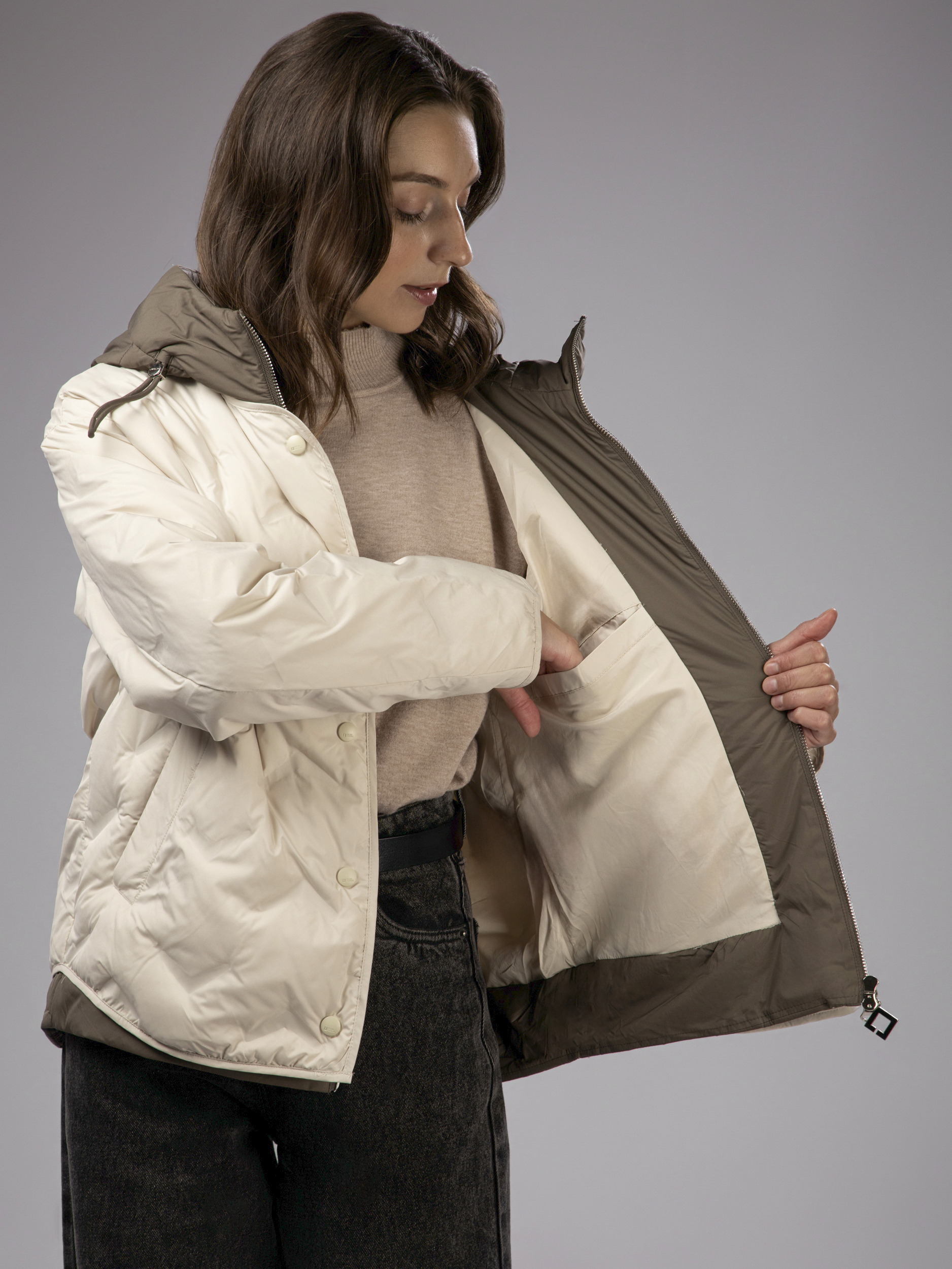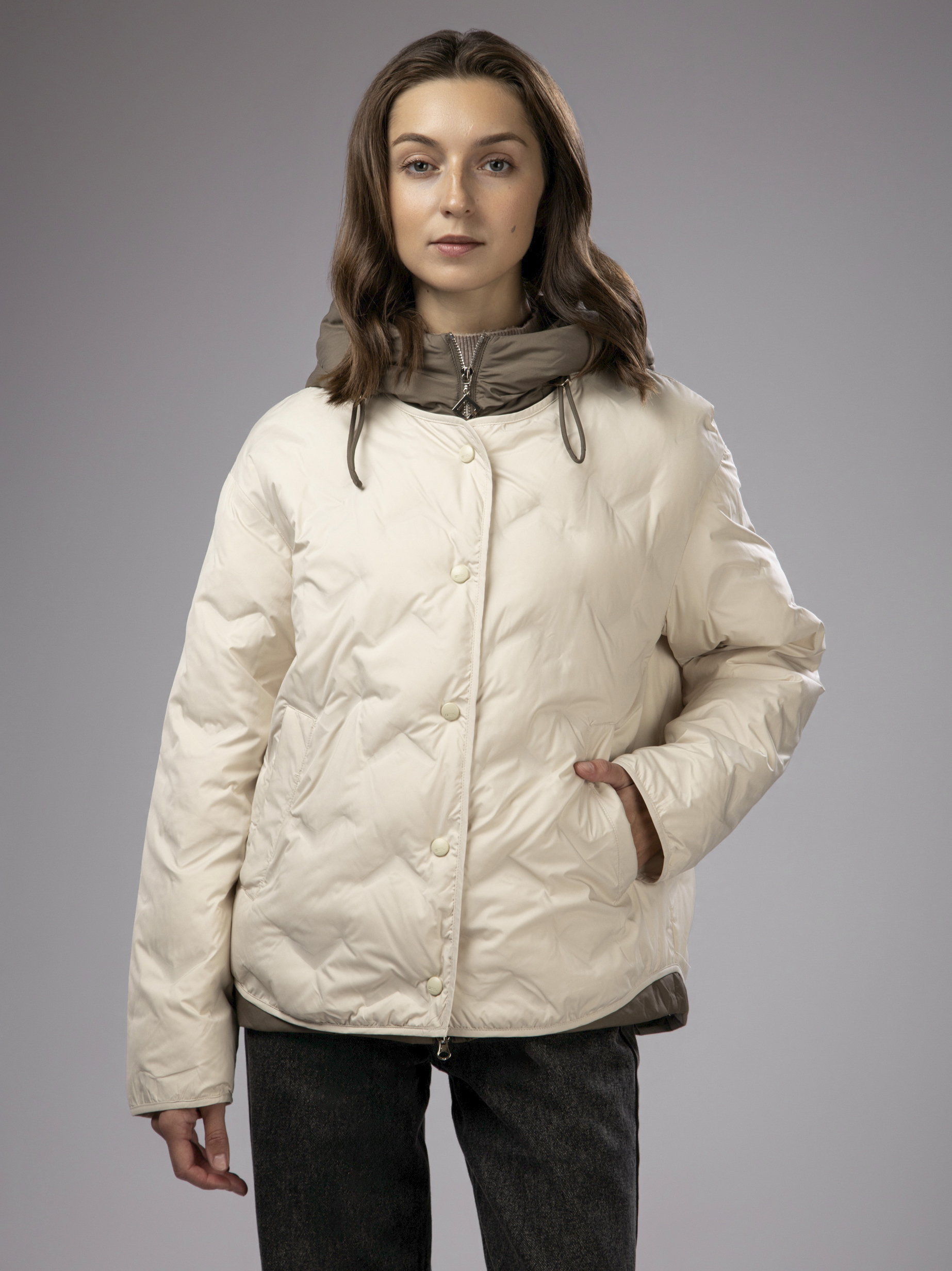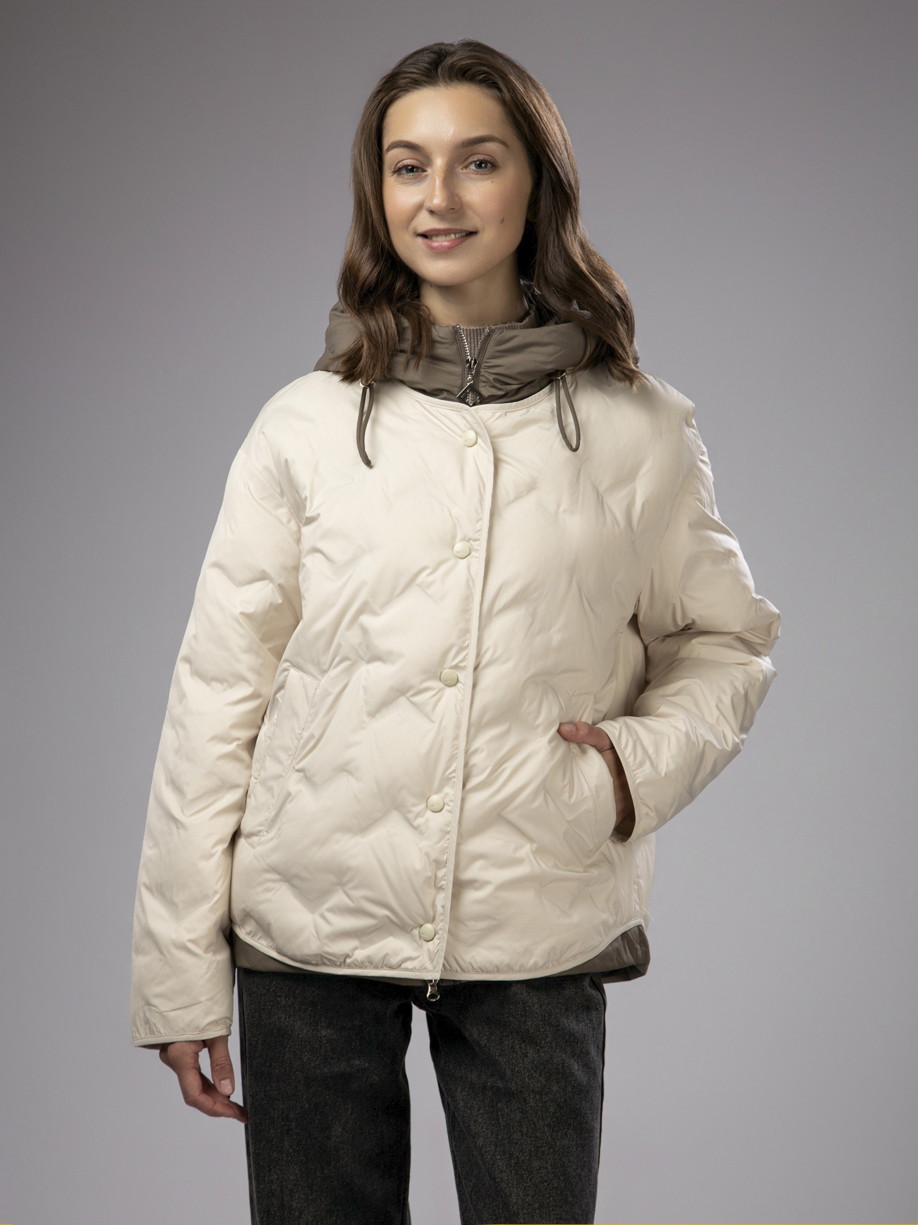 Куртка демисезонная с капюшоном оверсайз арт. 2919-P84-L-Beige-SWA1