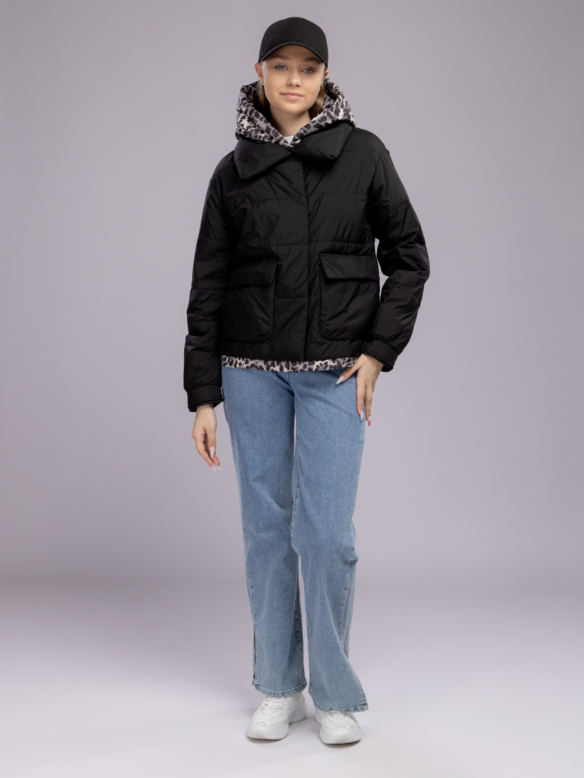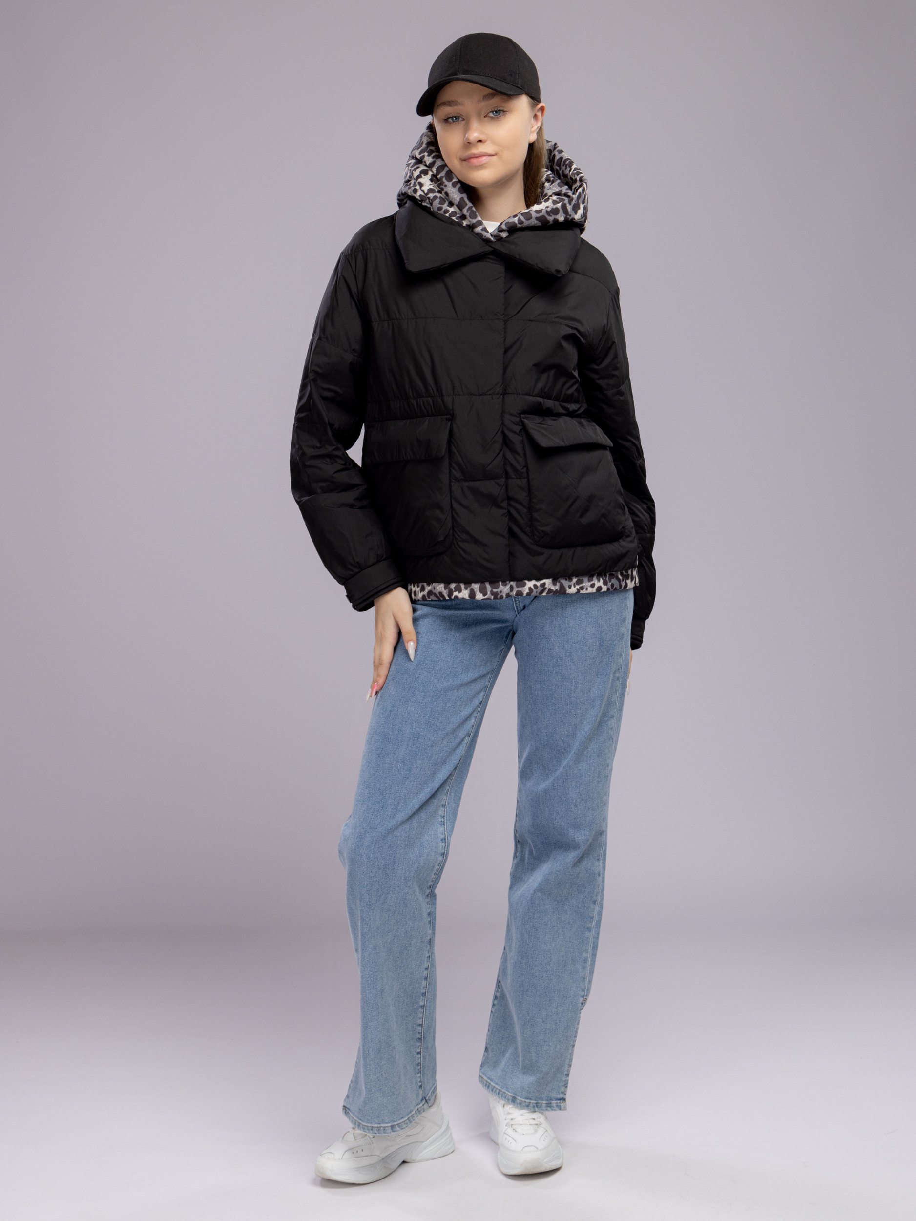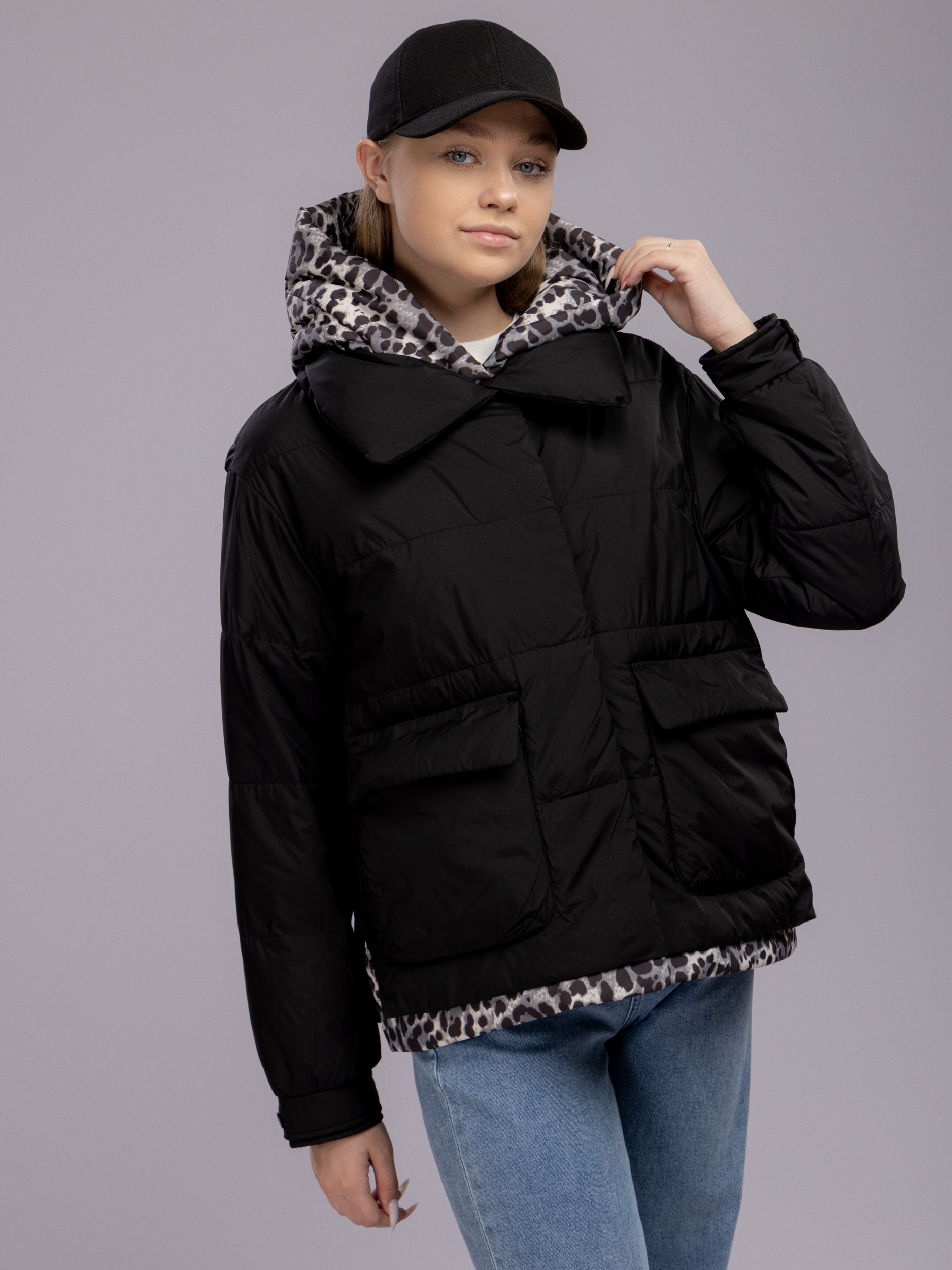 Куртка демисезонная с капюшоном оверсайз арт. 29244-P101-Black-SWA1