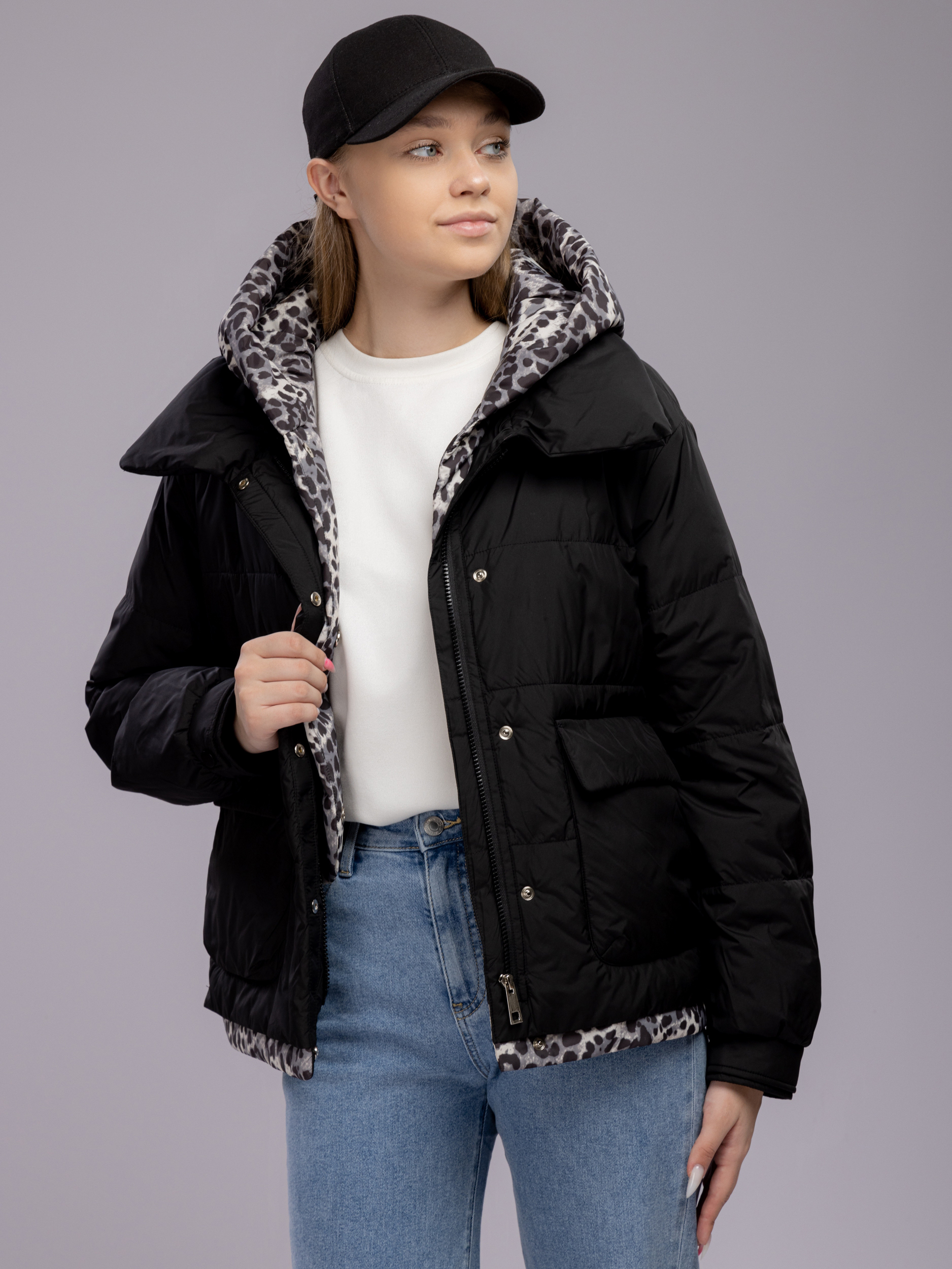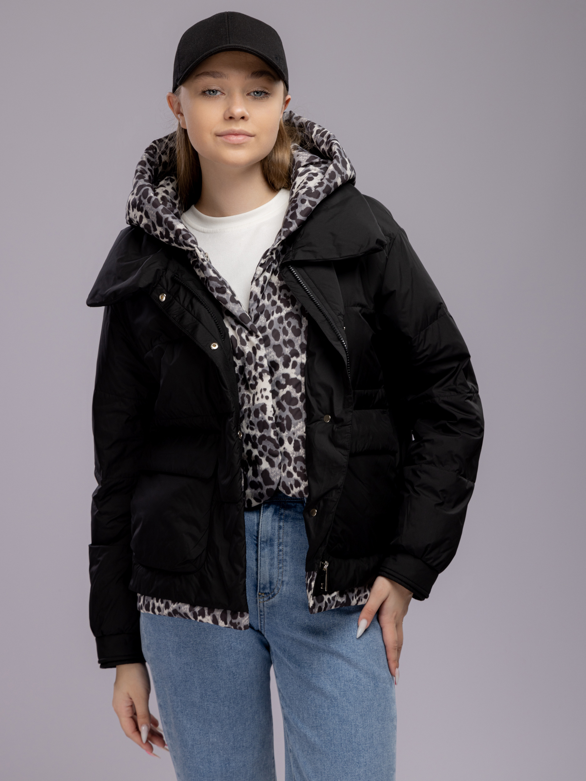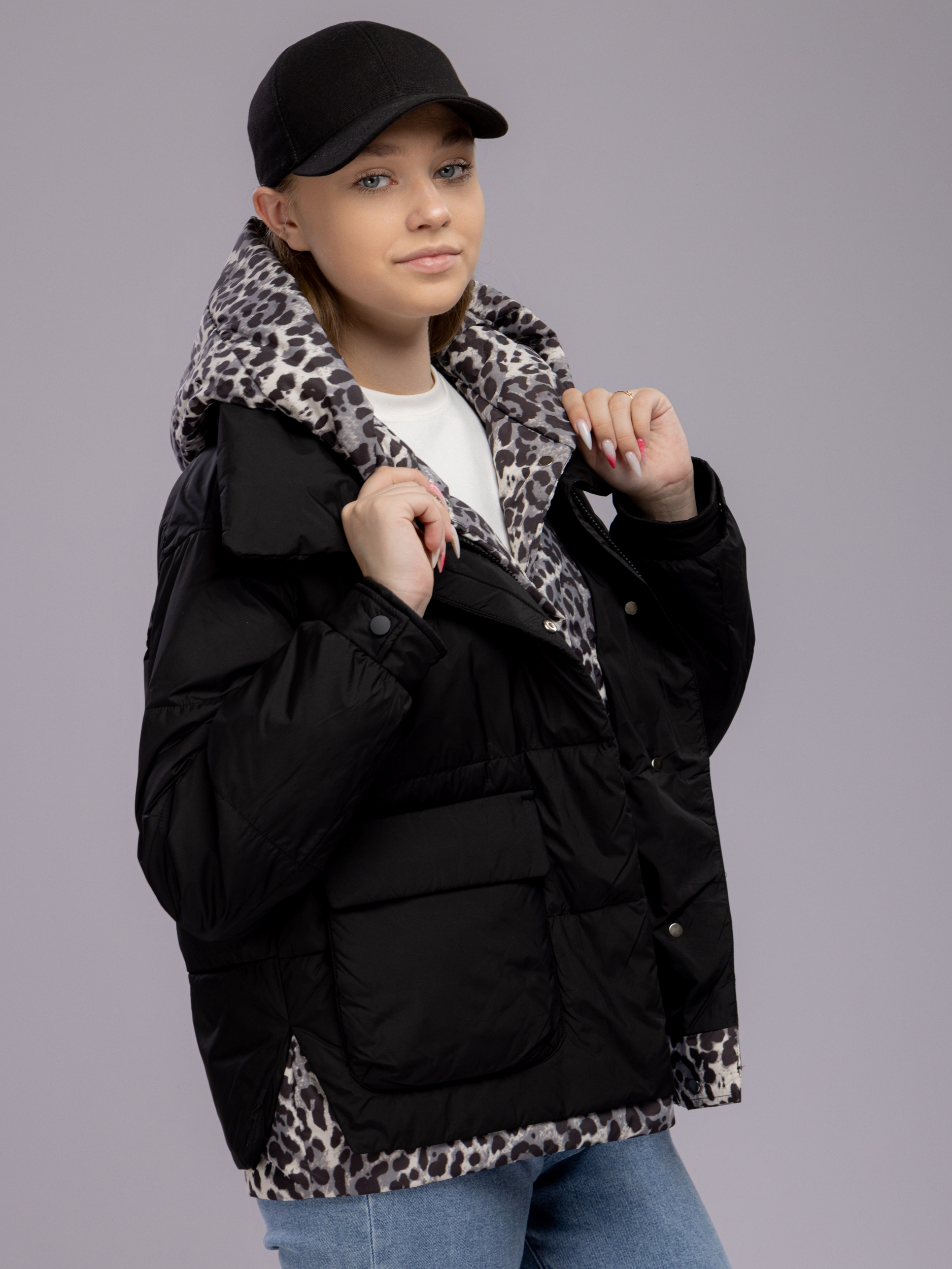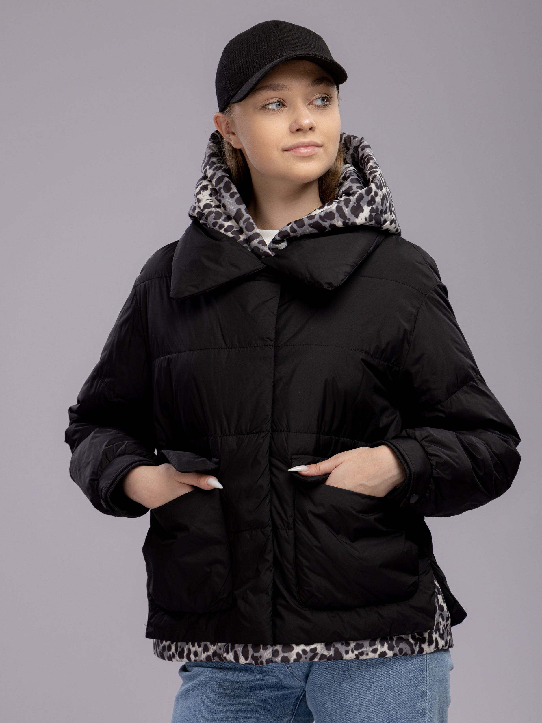 Куртка демисезонная с капюшоном оверсайз арт. 29244-P101-Black-SWA1
