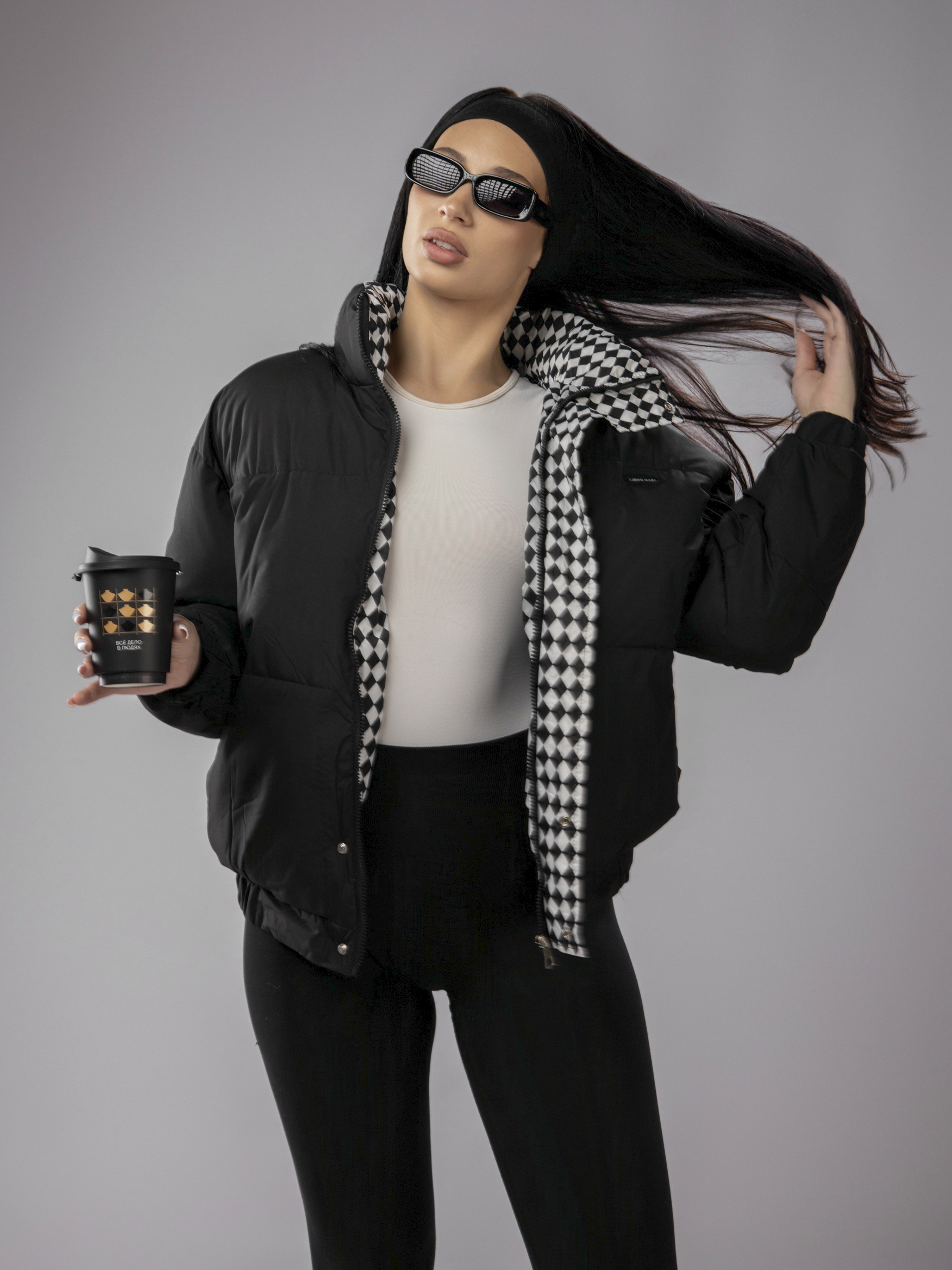 Куртка зимняя короткая оверсайз арт. T2662-Black-ZG88