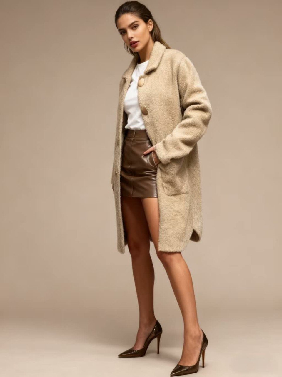 Продуманный дизайн и минимализм делают это классическое женское пальто универсальным для различных стилей одежды — от деловых до повседневных, легко вписываясь в любой гардероб.