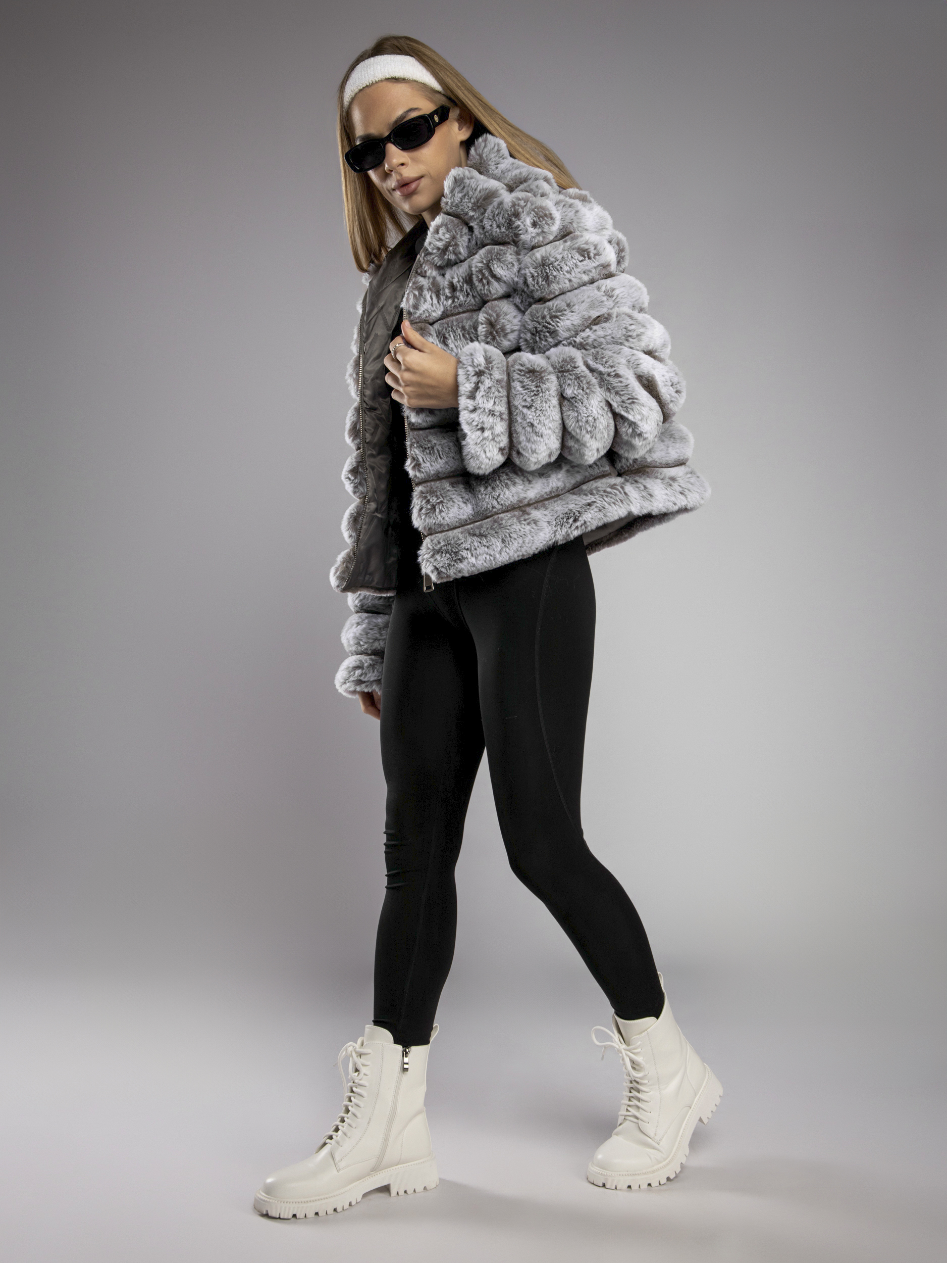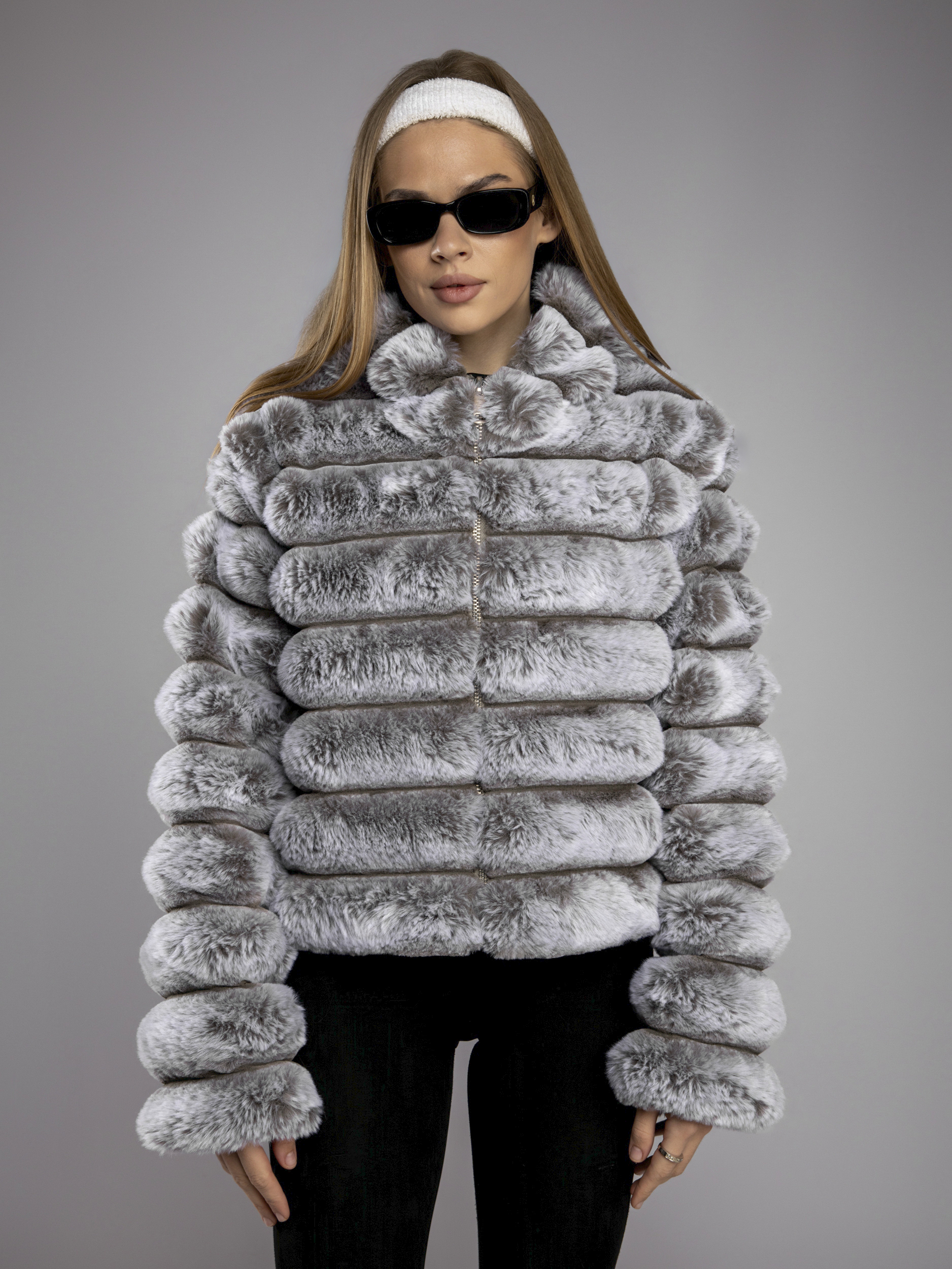 Шуба искусственная укороченная арт. 8811-Grey-MJB1-FF
