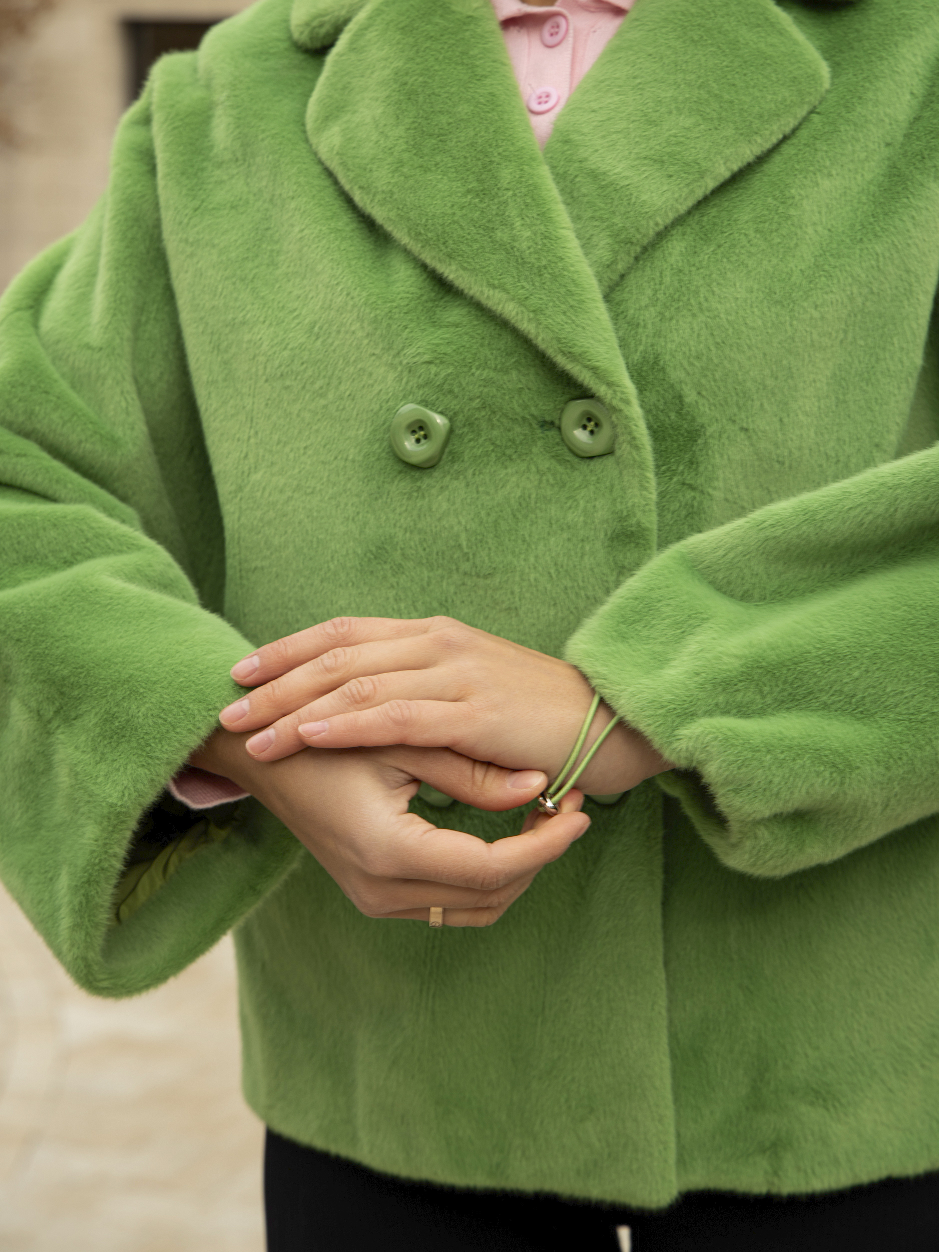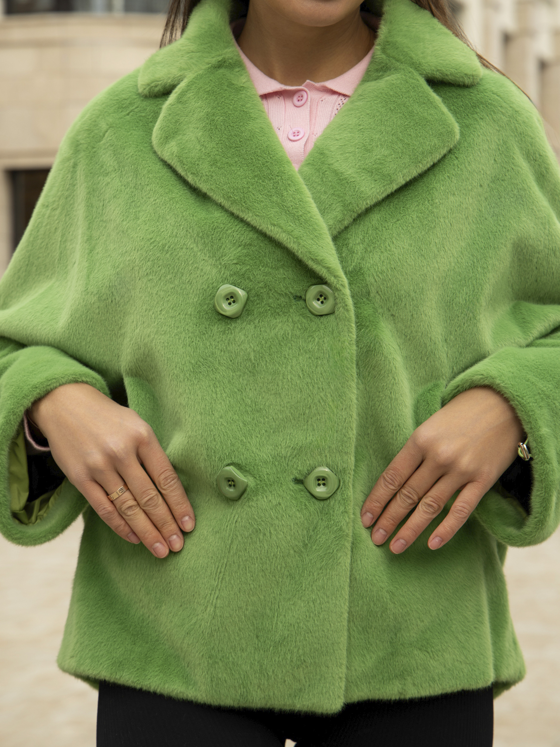 Зимняя экошуба оснащена двухрядной застежкой на пуговицах, что обеспечивает плотную фиксацию изделия и возможность регулировки под талию для создания более зауженного или свободного силуэта. Благодаря высококачественной отделке и прочным материалам, эта демисезонная шубка сохраняет свой первоначальный внешний вид и теплоизоляционные свойства на протяжении нескольких сезонов.