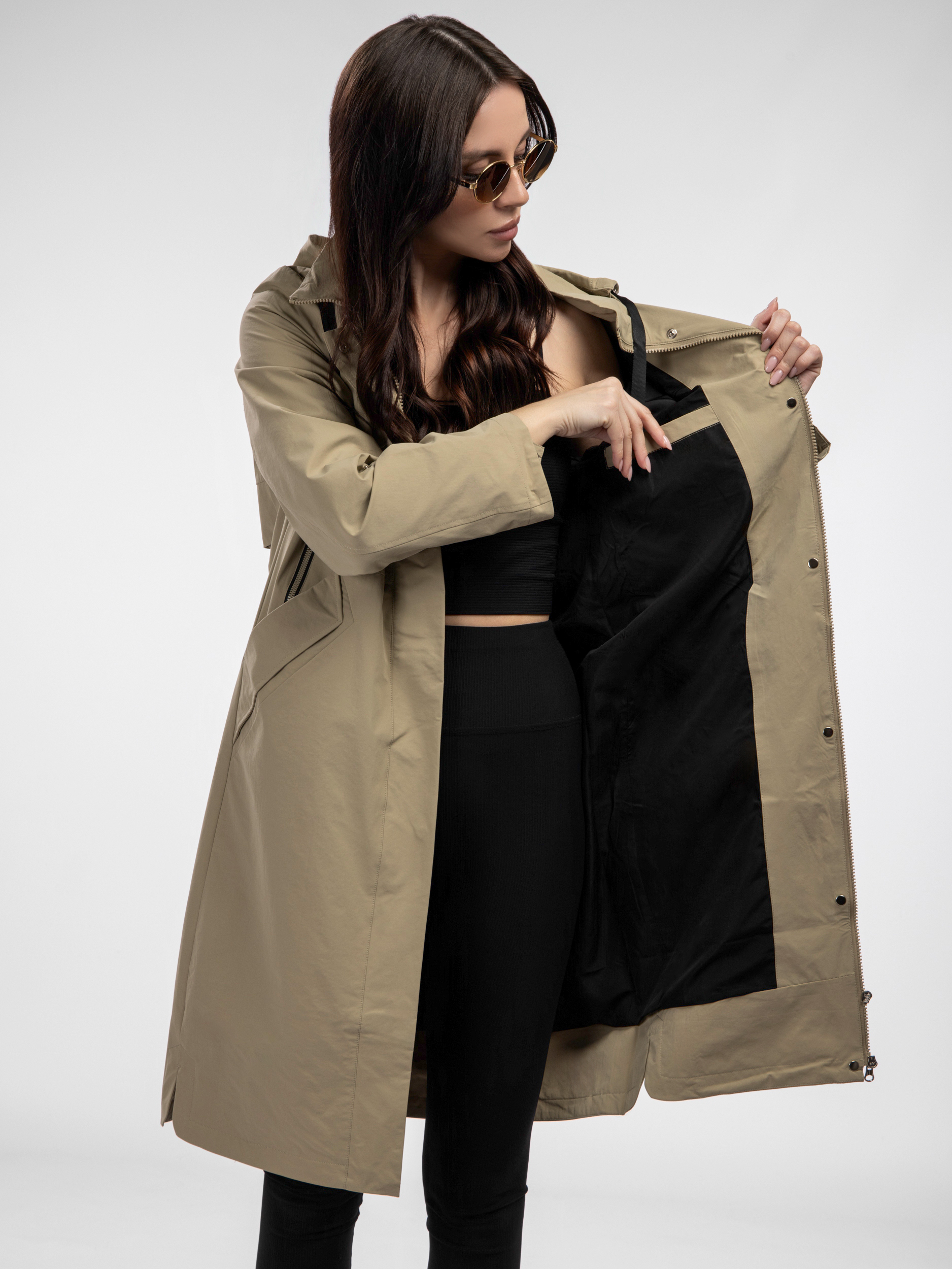 Ветровка демисезонная удлиненная оверсайз арт. BF-4358-17-L-Khaki-FBA1