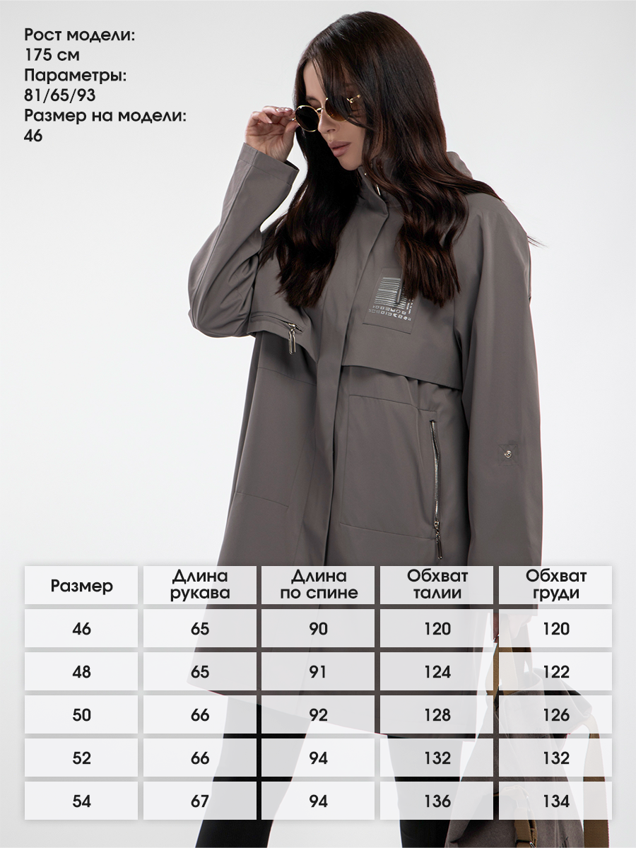 Ветровка демисезонная удлиненная оверсайз арт. AF-4300-20-Gray-SWA1